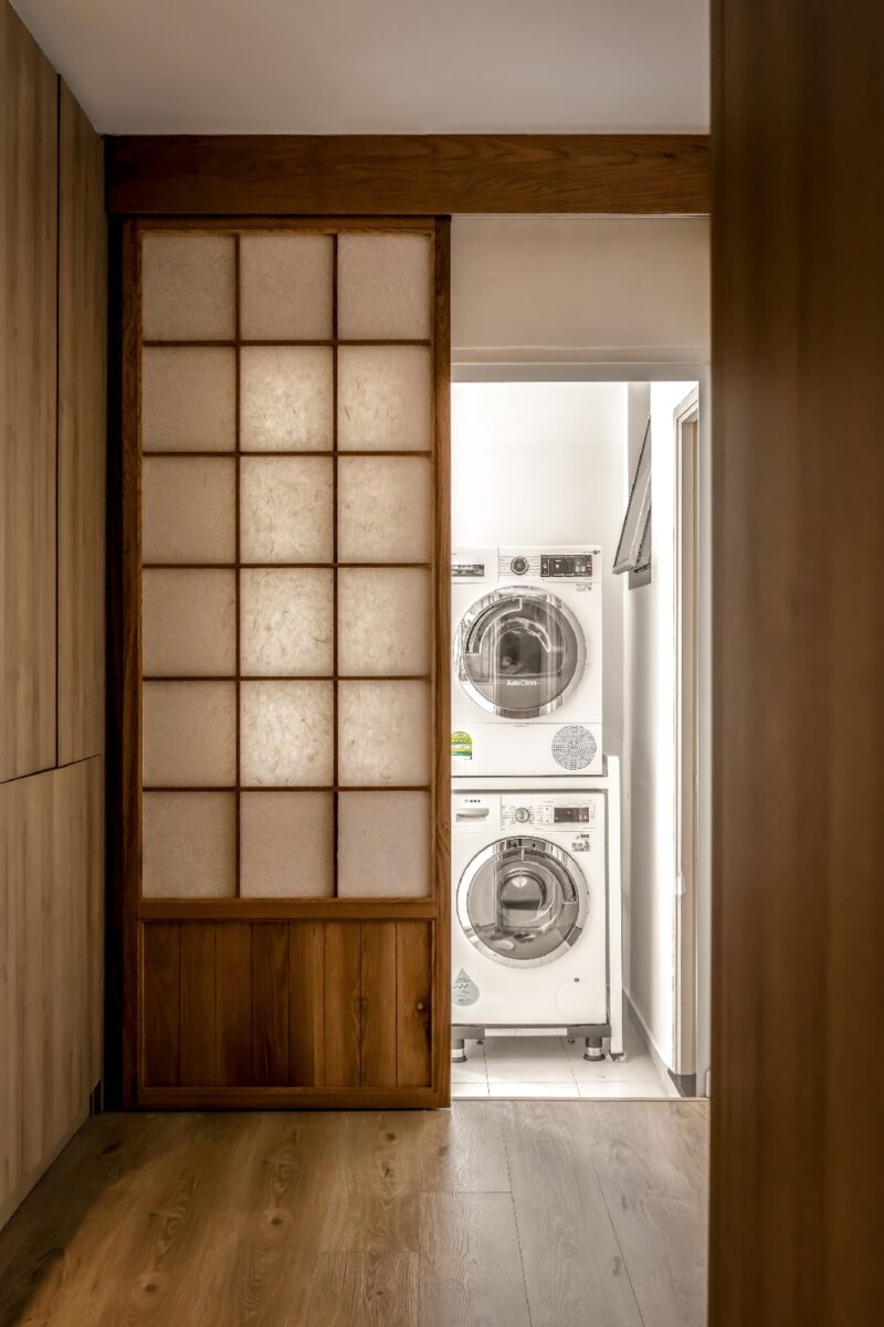 Cửa lùa sử dụng chất liệu gỗ nhẹ kết hợp với giấy Washi Nhật Bản