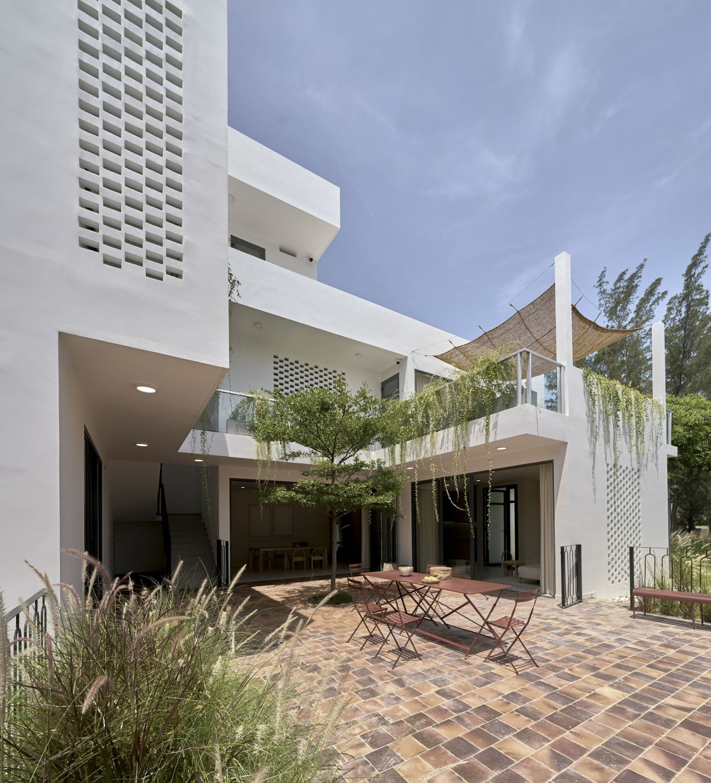 Terra Villa là một biệt thự nghỉ cuối tuần tại Vũng Tàu, với diện tích 450m² được thiết kế đặc biệt cho các gia đình trẻ từ Sài Gòn. Bảng màu của Terra Villa, lấy cảm hứng từ tông màu ấm của đất nung, tạo ra sự tương phản mạnh mẽ với kiến trúc trắng tinh tế, mang đến một không gian sống hài hòa và đẳng cấp cho gia chủ. Với việc kết hợp những đặc điểm độc đáo của vùng nhiệt đới Bà Rịa – Vũng Tàu, Terra được thiết kế để tận dụng tối đa lợi ích từ địa lý khu vực này. Màn che sợi tự nhiên không chỉ ngăn nhiệt hiệu quả mà còn duy trì ánh sáng tự nhiên cần thiết. Hệ thống cửa xếp/trượt đảm bảo thông gió tối ưu nhất có thể. Ngoài ra, nhiều mảng xanh đã được bổ sung để làm mát và tăng cường vẻ đẹp cho khu vực xung quanh ngôi nhà.