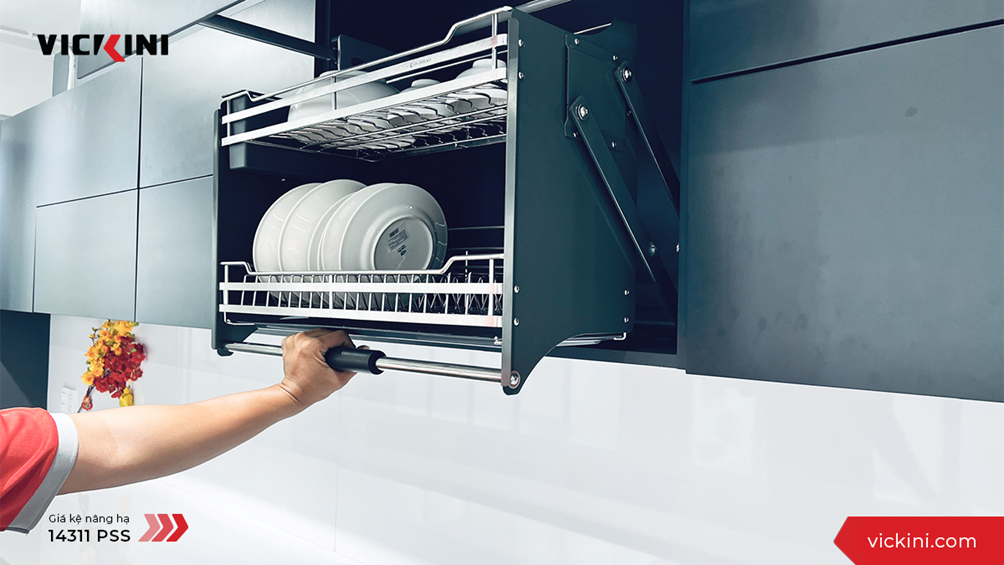 Không còn lo lắng về việc phải vươn tay để với tới những chiếc chén đĩa đặt ở những ngăn tủ trên cao nữa! Với sự ra đời của giá kệ chén nâng hạ VICKINI 14311, vấn đề này đã được giải quyết một cách triệt để. Sản phẩm này nổi bật với thiết kế thông minh và hiện đại, cho phép người dùng điều chỉnh độ cao một cách dễ dàng và thuận tiện chỉ bằng một thao tác nhẹ nhàng. Không chỉ mang lại sự tiện lợi vượt bậc, giá kệ này còn giúp tổ chức không gian bếp gọn gàng hơn, làm tăng thêm phần thẩm mỹ cho căn bếp của bạn.