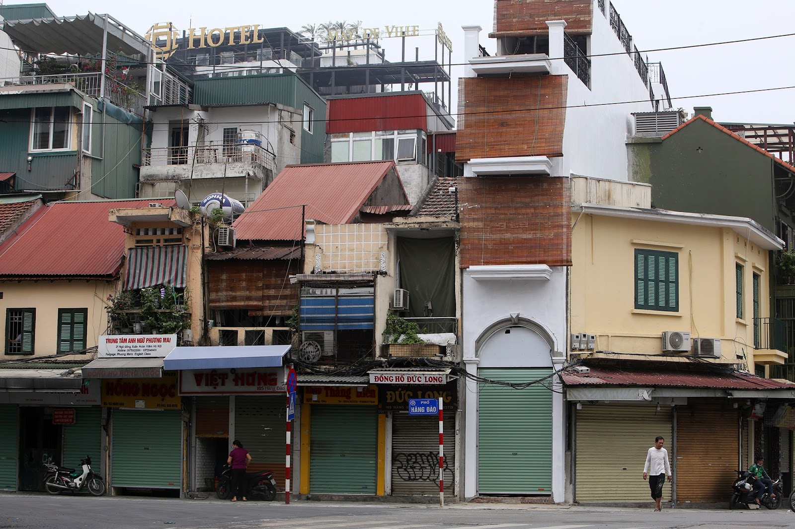 Kiến trúc lộn xộn ở đoạn phố Hàng Đào, những ngôi nhà ống chật hẹp ngày càng biến dạng (Ảnh: Dân trí)
