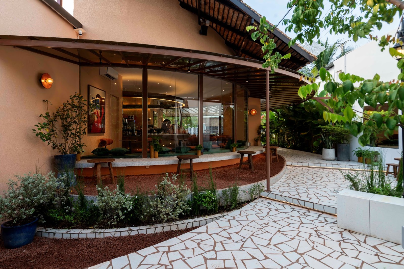 Không gian quán được mở rộng tối đa nhờ giải phóng tầm nhìn cả bên trong lẫn bên ngoài; tạo ra sự liên kết liền mạch với thiên nhiên cũng như khuôn viên xung quanh. Mái ngói dốc theo phong cách truyền thống được cân nhắc kỹ lưỡng để vừa giữ lại nét văn hóa đặc sắc vừa đảm bảo chức năng che chắn nắng phía Tây hiệu quả; đồng thời tạo nên những hiên nhà râm mát lý tưởng cho buổi chiều yên bình.